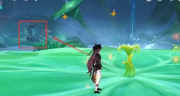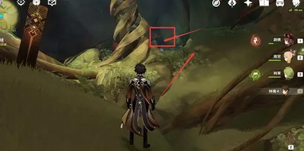 2、跟着任务提示进入秘境清理敌人,获取了原始松脂后往下图所示的位置弹奏进入二层