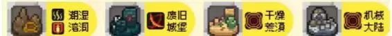装备:潮湿溶洞、废旧城堡、干燥沙漠、机械大陆