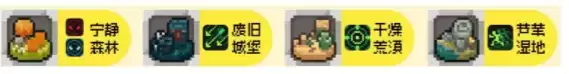 装备:宁静森林、废旧城堡、干燥荒漠、芦苇湿地