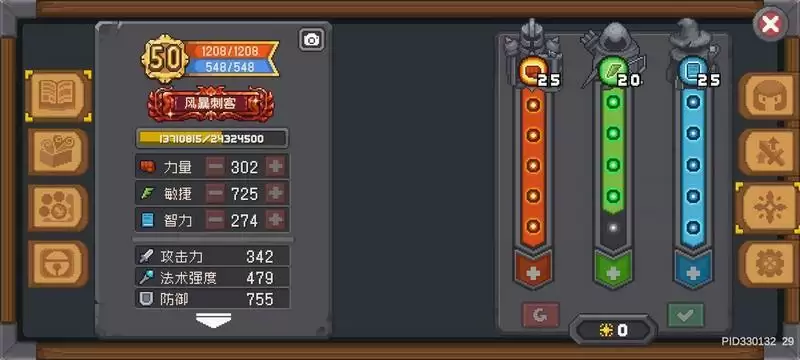 1、建议2智1力,感觉高层血量不够经常暴毙时就要舍弃一些智力点力量。