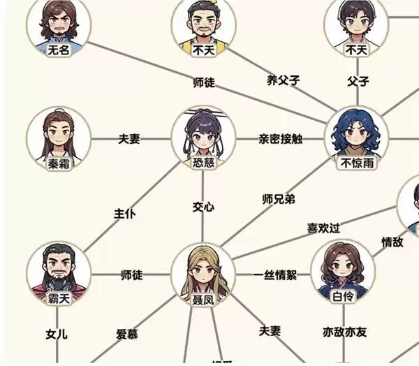 1、首先玩家要确定无名和不惊雨是师徒关系。其次就是不惊雨的养父和儿子都叫不天。
