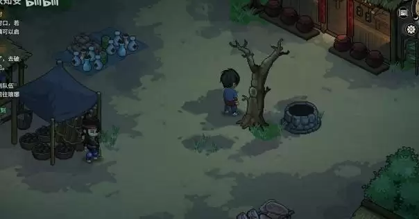 1、首先玩家进入无名小村就可以在村东头找到这个树子。就是在水井边的那个。