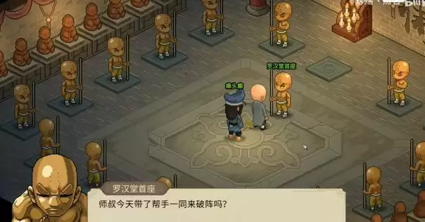 3、 获得首名后玩家将有资格进入罗汉堂。在这里你可以邀请癞头颠一同闯阵。
