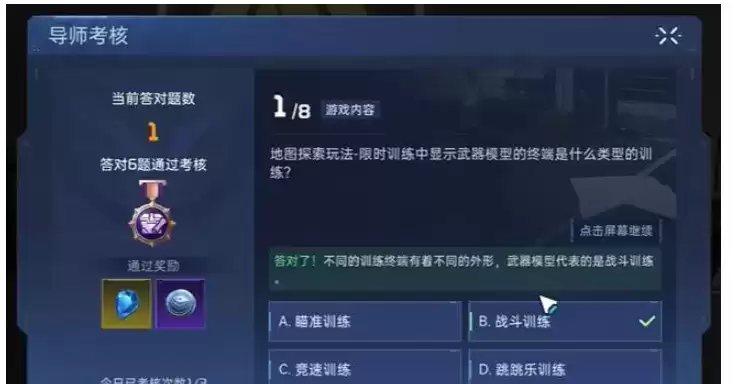 1、地图探索玩法限时训练中显示武器模型的终端是什么类型的训练?