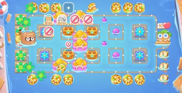 4、然后不断的清理这个宝箱,顺便清理两边的道具用来放更多的炮塔即可。