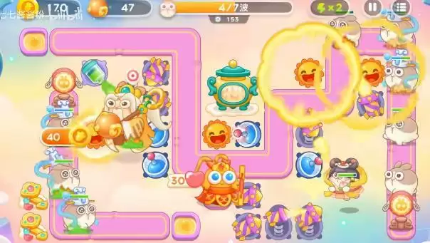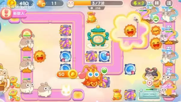 3、玩家需要在右边的位置增加很多的火箭塔,这个塔的攻速很快,并且不会有飞行怪跑过来。
