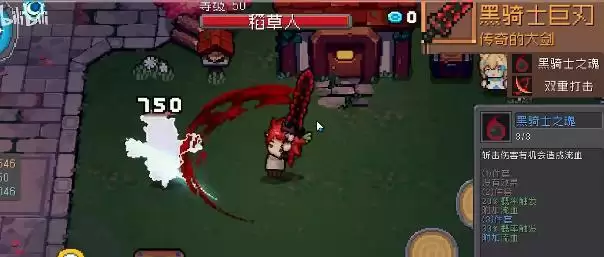 2、黑骑士双片:长按突进,然后在路上会钻出三把黑剑,突进结束还会再钻出三把,伤害随蓄力变高。