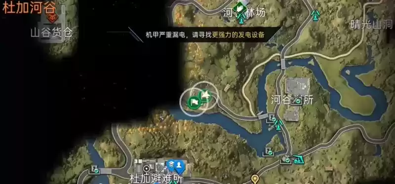 2、首先前往杜加河谷右下道路交汇处在旁边的屋顶上找到充电器。