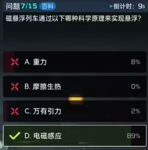 7、磁悬浮列车通过以下哪种科学原理来实现悬浮?