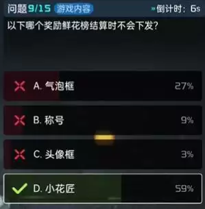 9、以下哪个奖励鲜花榜结算时不会下发?