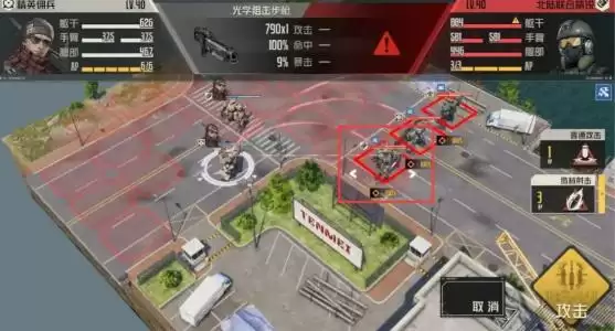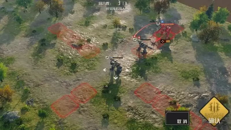 1.第一回合:先动狙击兵,用缴械射击打破他的躯干,移动到图中位置,攻击另一名机枪机兵的躯干,敌方触发不屈就不用管了。