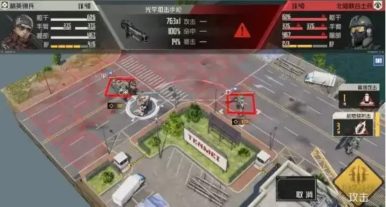 3、第三回合:我方狙击兵先打手臂。然后再打躯干,顺利过关。