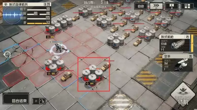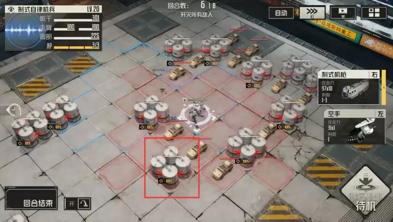 1.第一回合:按位置移动,打红框中的油罐。
