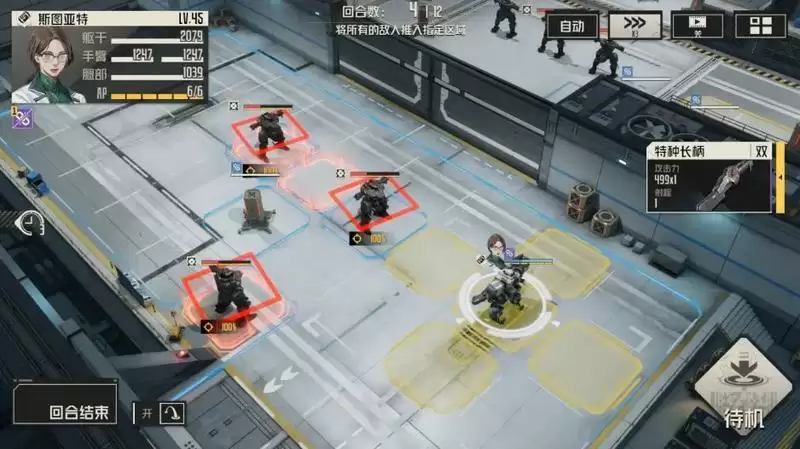 1、第一回合:移动至相应位置,并使用击退技能