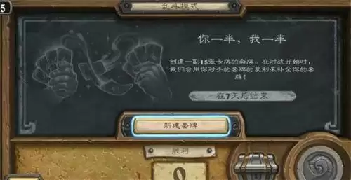 1、自选职业,创建一套15张牌构筑的卡组,对战开始,队友的卡牌复制将补全你的牌库;