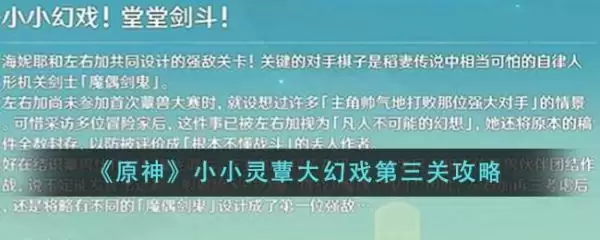 原神小小灵蕈大幻戏第三关怎么通关?原神中的小小灵蕈大幻戏已经进行到第三关了,许多玩家不知道第三关应该怎么过,本文分享了此关卡的阵容与打法,详细的内容在这篇小小灵蕈大幻戏第三关图文攻略中,希望对大家有帮助,让我们一起来看看吧。