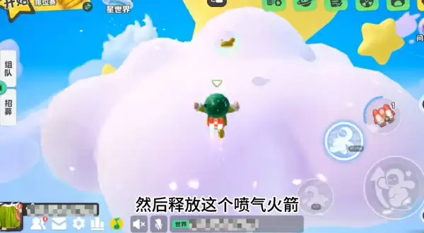 3、随后运用喷气背包的三连喷功能将角色推送至上方云朵即可获得。
