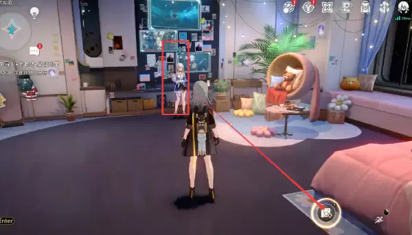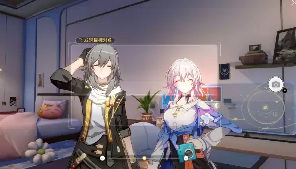 4、进入她的房间之后就会触发对话,然后就可以给她拍照了。