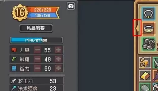 1、进入游戏点击背包,可以看到如下图所框选的箭头。