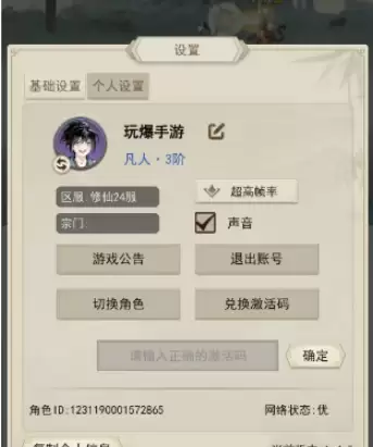 兑换位置:登录游戏——点击左上角头像——输入兑换码即可