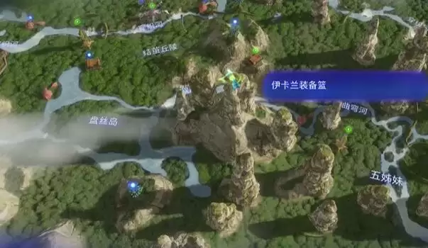 4、在陡峰林的右侧的姐妹赤耳河上面可以找到伊卡兰装备篮,打开可以获得蓝铁矿高级系带。