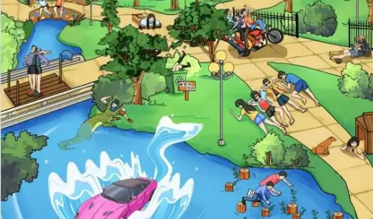 1、我们进入到关卡当中,就可以看见手痒推女友、拖行前进、湖中飙车、超载摩托等吃饱了撑的答案。