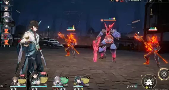 6、第三波打法:掌握好破盾节奏优先让虚数破盾,饮月强化3次放E技能,瓦尔特普攻打左侧敌人,其他两个给普攻攒战技点。