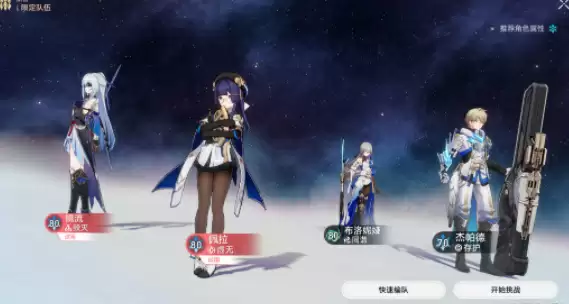 1、两个试用角色+奶妈/盾+辅助。奶妈和盾就用娜塔莎/白露/杰帕德等,然后辅助就是布洛尼亚/艾丝妲/停云这几个选一个即可。