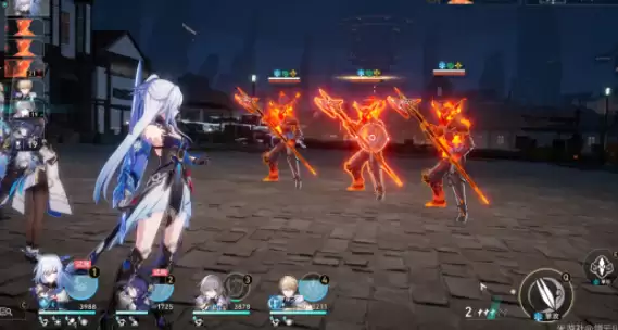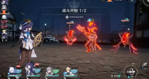 2、第一波无增益只有一个选择,优先集火中间小怪,使用佩拉攻击中间敌人,辅助技能给镜流,使用战技击败它。