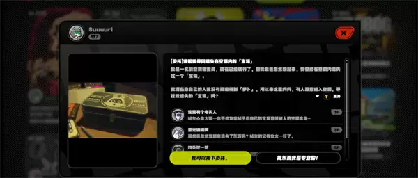 1、玩家可以在绳网中看到委托贴子【找回遗失在空洞中的宝箱】,发送信息。