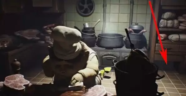 1、这个关卡主要是面对敌人,关卡本身的解谜没什么难度,进入厨房之后,可以在这里躲一会,等厨师走掉再出去。