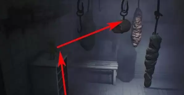 6、香肠机房间:如下图箭头所指,从这里进去便可上二楼储藏室。