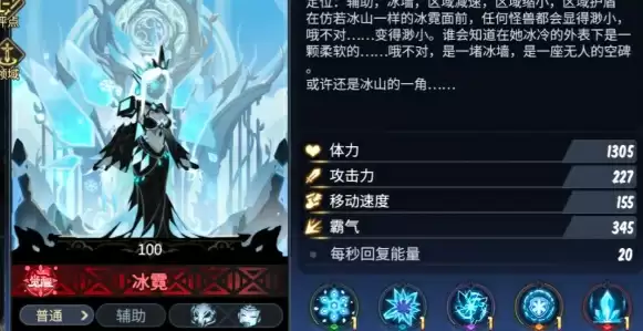3、冰霓属于前排坦克,基础移速较低,霸气略高【所以,移速在200-250左右就可以了,不宜太快】前排输出为主的阵容可以300以上。