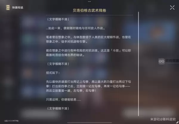 1、各位打完所有斗技表演赛后,别急着走,会得到一本古武术残卷,如下