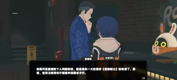 1、首先玩家要来到录像店,与店铺中的游戏NPC塔维斯进行对话。