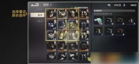 如下图所示,选择要还原的部件即可返还全部升级材料和强化消耗的米赫玛元。