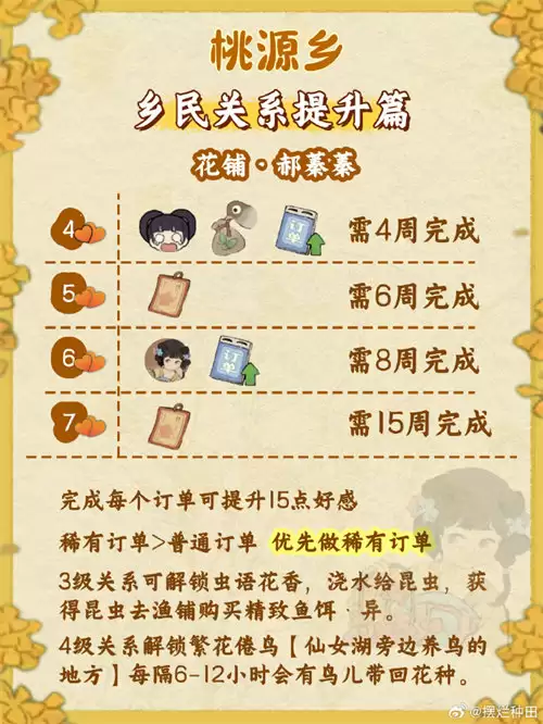 4级关系解锁繁花倦鸟,每隔6-12小时带回花种。