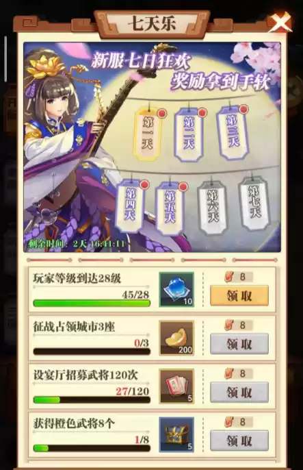 领取途径:12级完成对应主线任务解锁活动后,游戏内右上角进入活动后找到开服活动即可进入开服七天乐。