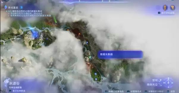 1、水道谷右侧的迷雾中有数据采集器。