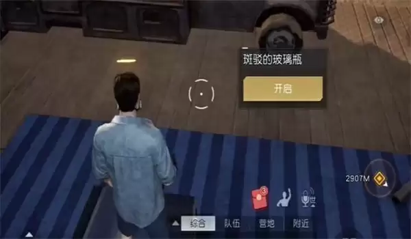 2、到达目的地之后,走向我们正前方的一个沙发上就会提示出开启斑驳的玻璃瓶。