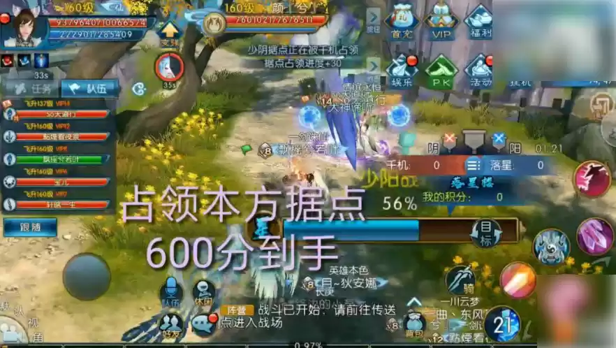 倒计时结束后,建议先往右边先把本方据点占了,稳拿600分,路边有buff可以顺路蹭一下,有时候运气好会刷莲语这个buff,直接奖励200分。不推荐一开始就往中间占是因为,有可能对面也同时到达进行争夺,僵持不下的话自身就比别人少了600分。