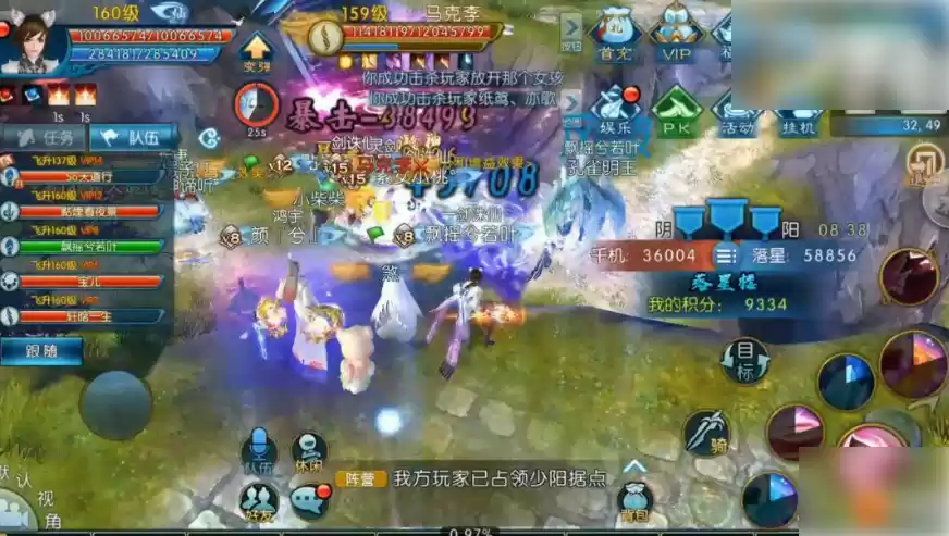 进场首先看自己是哪方阵营,如图己方是落星阁,代表的是蓝色,而千机阁代表的是红色,通过图中旗帜可以了解到三个据点敌我占领情况,双方分数可以判断优势劣势。最关键的是,通过信息栏判断采集点出现的方位,在某一方分数接近2万、3万、5万的时候就要开始准备了,优势一方率先到达指定分数,那么采集点肯定出现在劣势的一方,你就可以提前做好准备,像视频中击杀敌方采集或者采取提前到场快速偷采集的方式。不要等系统提示,等系统提示你有可能错失良机,被牵制住或者刚好阵亡就很尴尬。