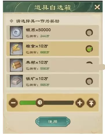 5、资源宝箱使用1个资源宝箱可获得10w粮食