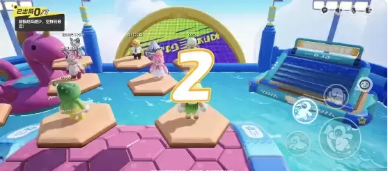 3、各位小伙伴都是在二层平台进行站位,开始后可根据自身想法选择继续待在二层平台直至踏板消失或者直接从二层平台跳跃至蜂窝滚筒开局。