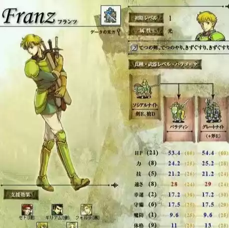 本作首个出场的天马骑。后期想用天马三角攻击战术的话,转隼骑。不用的话,建议翼龙骑。隼骑士只有魔防的能力上限比翼龙骑低,只是翼龙骑的两防成长率偏低。