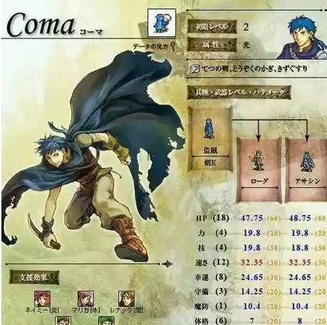 两种职业只有两个不同点,一是职业特技不同,二是刺客的体格是8而侠盗的是7。(战斗动画不同这点就不用包括进来了吧==)除此之外,这两种职业的能力上限,能力成长率等等一系列东 都是相同的。