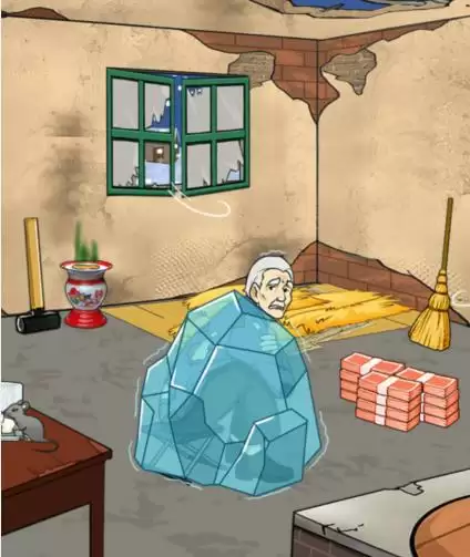 2、拖动锤子到爷爷身上,把冰敲碎,再拖动钱到爷爷,再拖动给爷爷的牙齿
