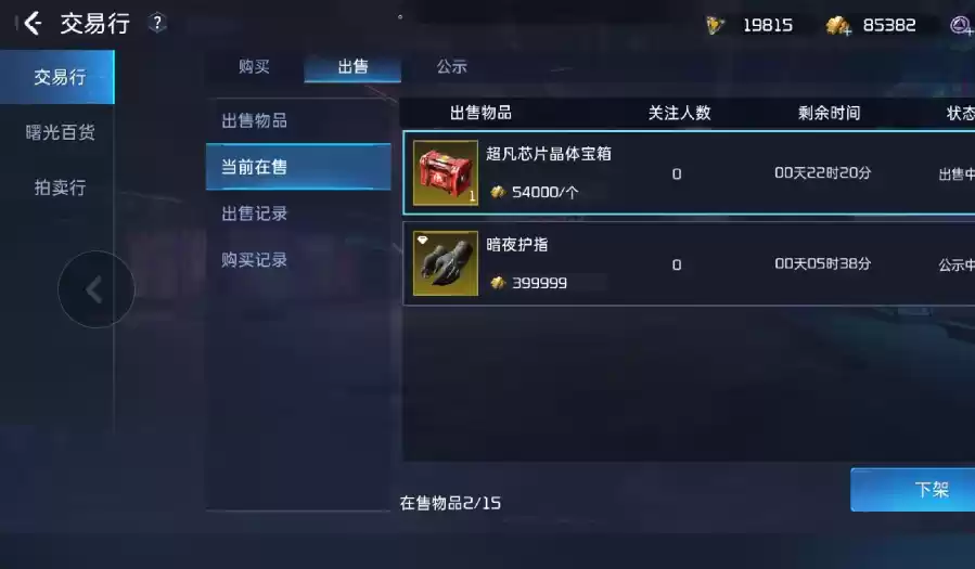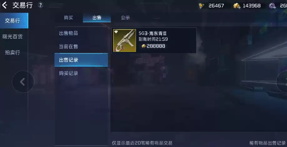 4、最后在出售记录的页面中看到你正在出售的武器。