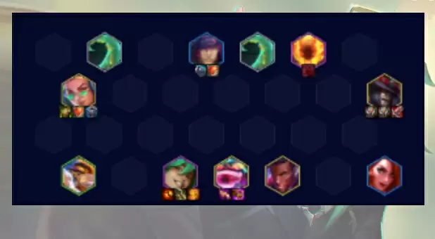 阵容站位:两个输出一定要站在中间放置被阿卡丽切。