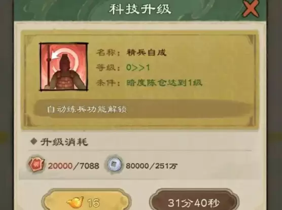 2、升级科技太学院里的一些科技在升级时会消耗功勋。